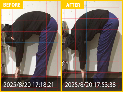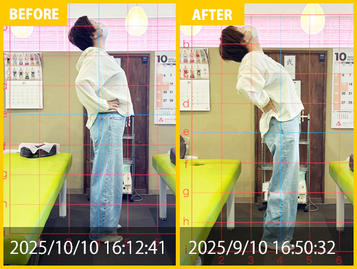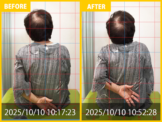 姿勢の悪さ 胸椎のズレによる腰痛や首の凝りがありましたが、CIP施術などを行い痛みはほぼ消失されています。