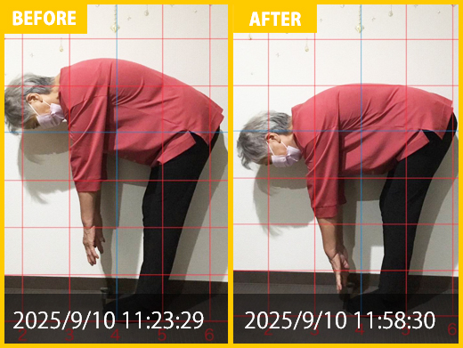 ご来院当初は腰痛が酷くそれにより膝まで痛みがでておられました。原因として筋力低下や腰椎のずれがありましたので、矯正やEMSを施術を行い改善に向かわれています。